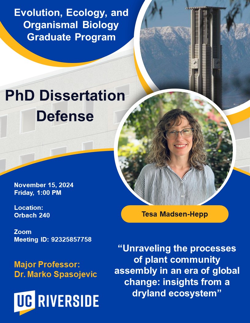 THE EEOB GRADUATE PROGRAM IS PROUD TO ANNOUNCE THE PH.D. DISSERTATION DEFENSE OF TESA MADSEN-HEPP